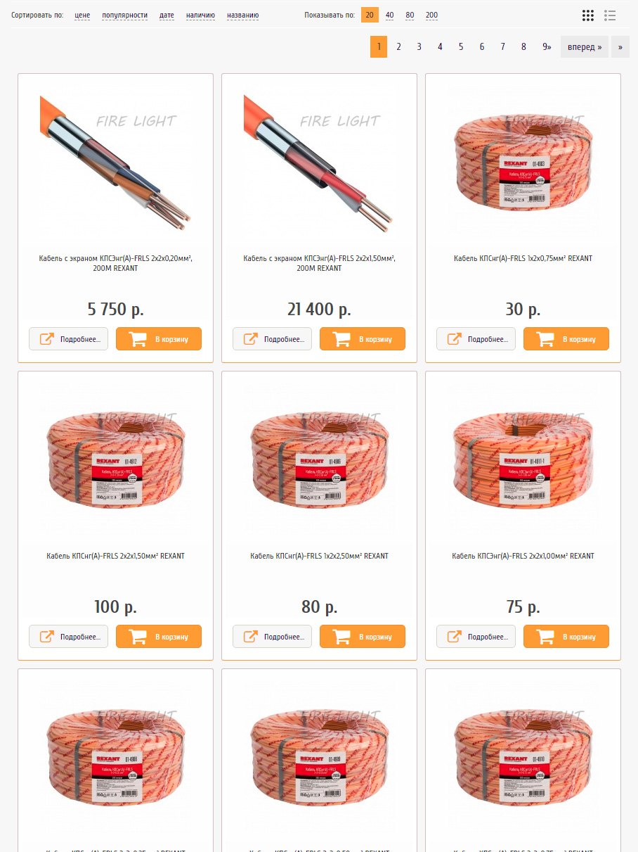 Интернет-магазин по продаже электротехнической продукции и светотехники для холдинга «Файер Групп». Разработка интернет-магазина с большим количеством товаров под ключ.