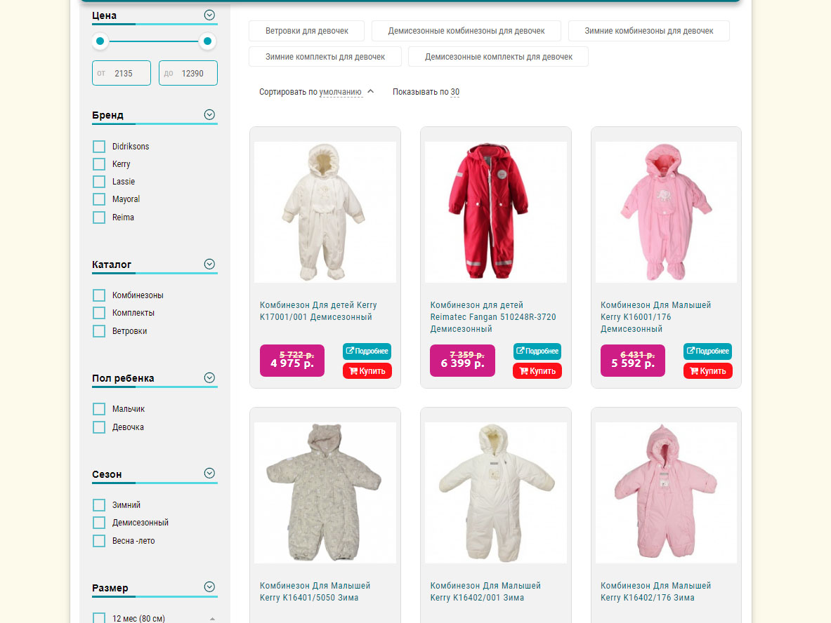 Пользователю важно не только то, как будет выглядеть магазин товаров для детей, но и то, как легко здесь можно будет найти нужную вещь или сделать заказ. Учитывая это, наши специалисты проработали такую структуру сайта, в которой любой товар можно найти в различных разделах каталога, в зависимости от логики поиска покупателя: