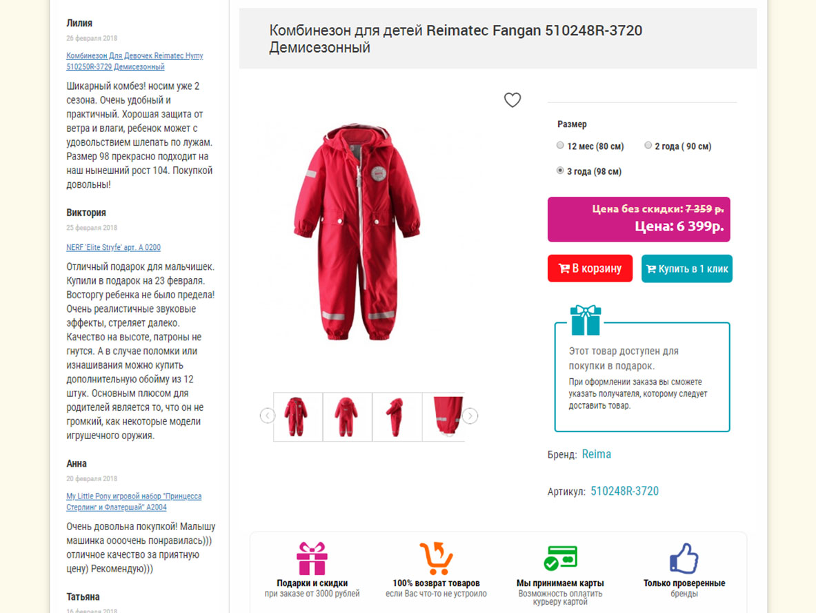 - Реализованна система отзывов о товарах