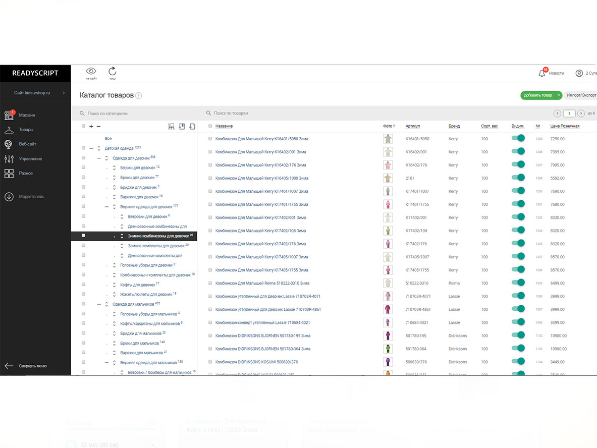 Платформой для интернет-магазина был выбран «ReadyScript», с помощью которого были реализованны: