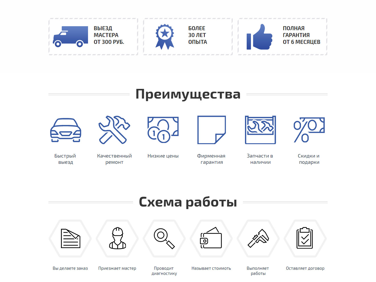 Для целей продвижения сайта были созданы посадочные страницы в ближайших к Егорьевску городах. Прайс-лист оформлен в красочном виде с картинками и формой заказа. Для легкости восприятия сайта были прорисованны иконки для всех основных элементов