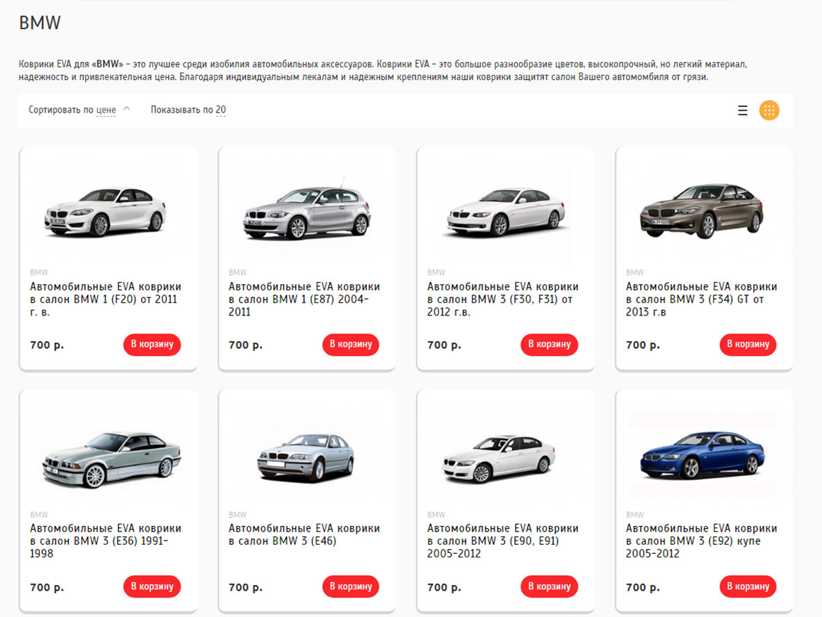Интернет-магазин по продаже ковриков EVA. Разработка интернет-магазина под ключ ковриков для автомобилей в Егорьевске. Создание, продвижение, техническое и информационное обслуживание.