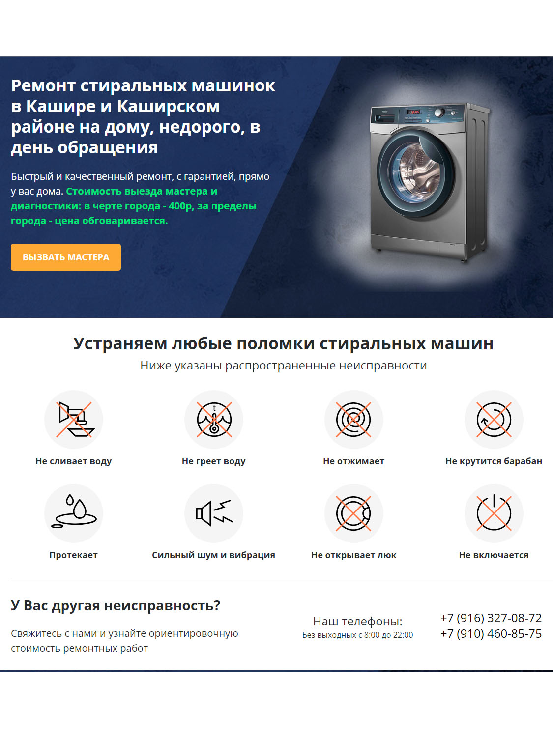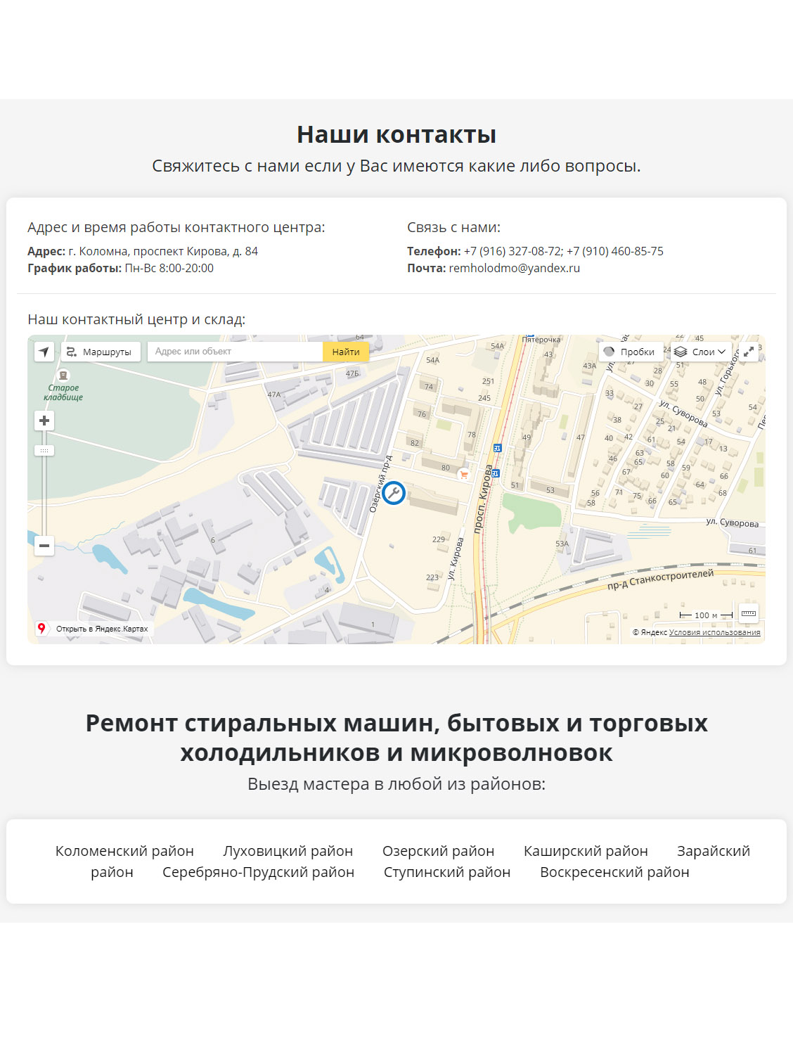 Для целей продвижения сайта были созданы посадочные страницы в ближайших к Коломне городах. Для легкости восприятия сайта были прорисованны иконки для всех основных элементов